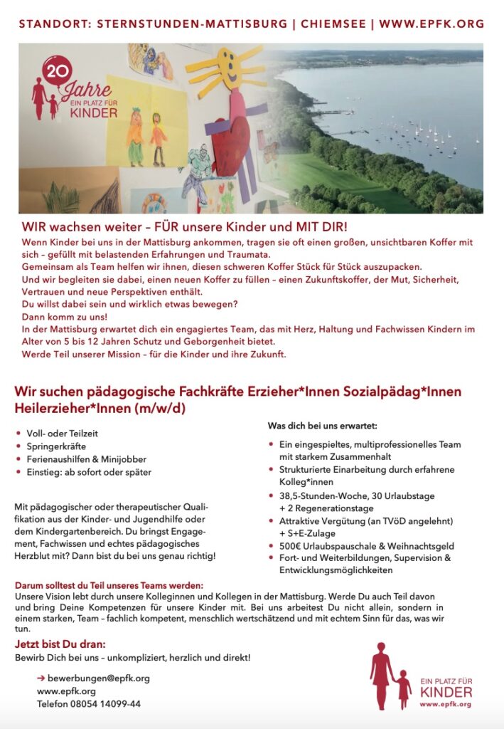 Aktuell sind zum nächstmöglichen Zeitpunkt in Mitterndorf am Chiemsee folgende Positionen zu besetzen: