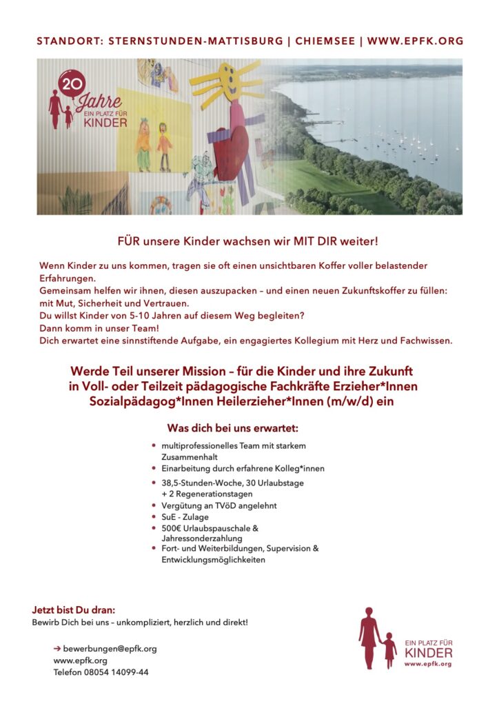 Aktuell sind zum nächstmöglichen Zeitpunkt in Mitterndorf am Chiemsee folgende Positionen zu besetzen: